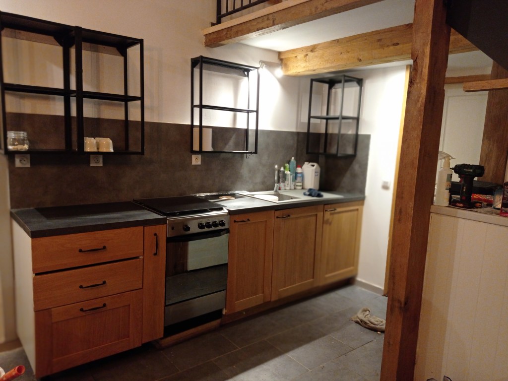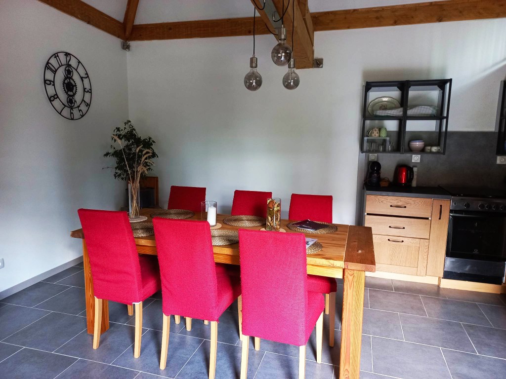Au rez-de-chaussée se trouve un chambre avec un lit 2 places. On trouve aussi un salon salle à manger complètement équipé avec un feu au bois.